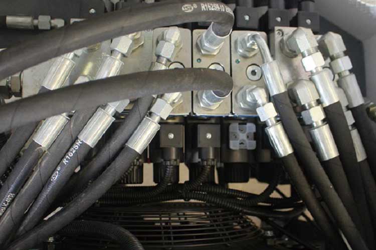 4、獨立四輪移動,方便靈活。通過液壓驅(qū)動車輪行走系統(tǒng),使得輪子可以獨立運動,與整平頭互不影響,使用電控操作輪子的前進、后退、轉(zhuǎn)向及行進速度,移動非常方便。